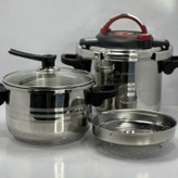 قابلمه 5 لیتر * قابلمه 7 لیتر * درب زودپز *درب پیرکس * سبد بخارپز * واشر سیلیکونی * دفترچه راهنما