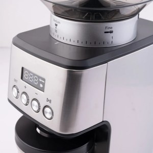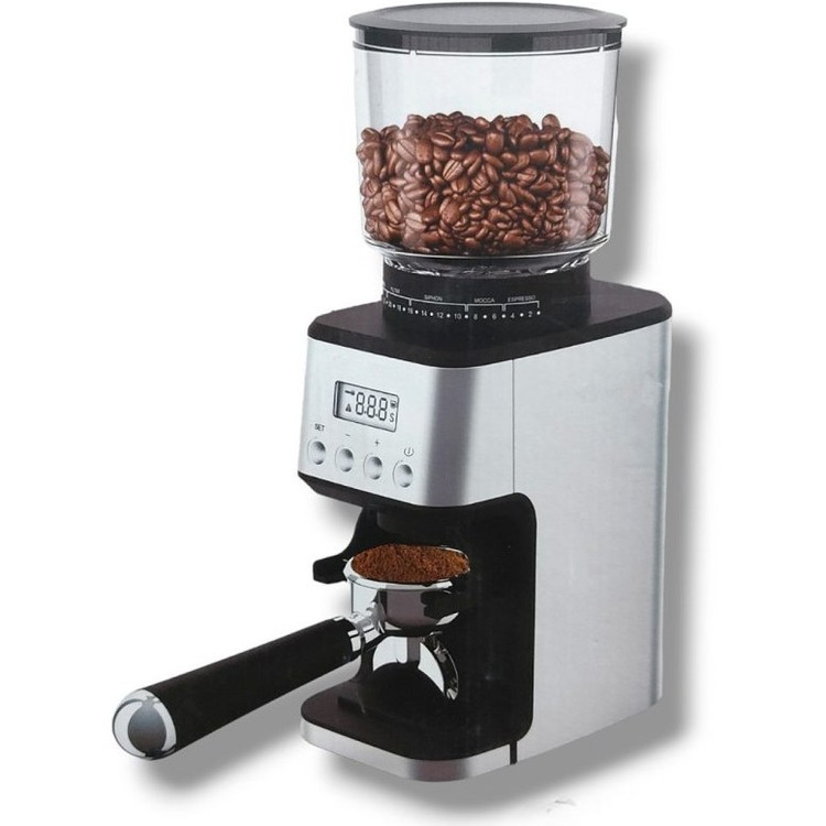 مصرفی200وات جنس بدنه استیل ضد زنگ رنگ بدنه نقره ای از دیگر خصوصیات این دستگاه مخزن ۳۰۰ گرمی و جنس بدنه ، صفحه برد و دکمه های استیل ، نمایشگر LEDدیجیتالی، لرزشگیر قوی ، صدای بسیار کم میتوان نام برد. لوازم جانبی مانند فرچه برای تمیزکاری آسیاب و مخزن قهوه ی آسیاب شده ونگهدارنده مگنتی(آهنربایی)