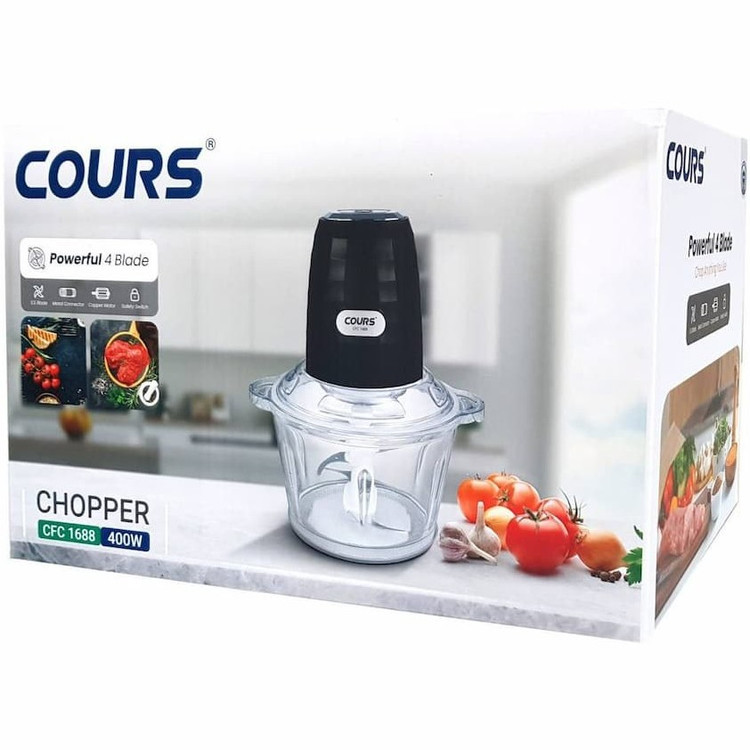 خردکن کورس مدل CFC 1688 دستگاهی با کیفیت و بسیار پر قدرت است که 400 وات توان دارد و فضای بسیار کمی را اشغال میکند. از این خردکن برای خرد کردن و پوره کردن انواع مواد غذایی اعم از سبزیجات، گوجه، پیاز، آجیل، گوشت و… میتوان استفاده کرد. بدنه خردکن کورس CFC 1688 از شیشه ساخته شده و ظاهر زیبایی دارد. ظرفیت این خردکن معادل 1.8 لیتر است. طراحی تیغههای این دستگاه در کنار گنجایش ظرف اصلی، شما را قادر میسازد در هر بار استفاده، میزان زیادی از مواد را با کیفیت مطلوب خرد کنید.تیغههای به کار رفته در این خردکن به صورت چهارپره و از جنس استیل ضد زنگ ساخته شدهاند. کاربری این دستگاه نیز بسیار ساده میباشد و از طریق دکمه فشاری تعبیه شده روی آن کار میکند.