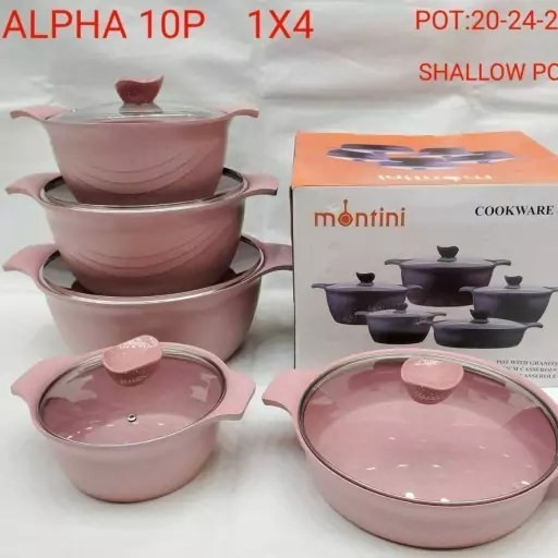 سرویس قابلمه گرانیتی10 پارچه مارک مونتینی(صورتی)
