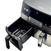 دارای دو سبد 6 لیتری// و دارای برنامه های پخت به صورت مجزا //و 1700 وات توان مصرفی هر سبد// قابلیت نظافت اسان //و 80 درصد صرفه جویی در مصرف روغن.