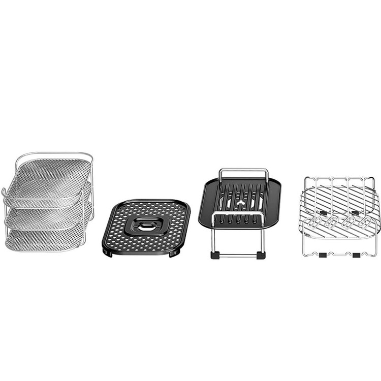 هواپز، گرم کن مجدد، گرم نگهدارنده، کباب کردن، جوجه گردان ( با داشتن سیخ های کوچک و پایه استیل )، یخ زدایی، گریل پخت کیک و شیرینی، میوه خشک کن, این دستگاه عالی دارای توری های میوه خشک کن، استند گریل، سیخ های کوچک جهت انواع فیله و چنجه و سبزیجات، صفحه کریسپیر و پایه گریل است