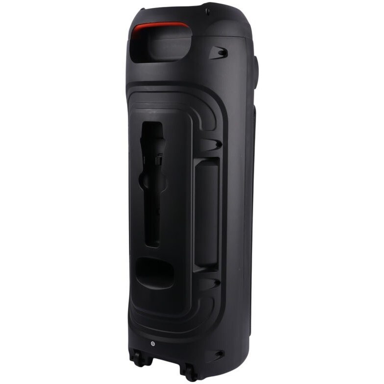 ورودی میکروفون: پشتیبانی از اتصال یک یا دو میکروفون (معمولاً سیمدار همراه محصول است) برای کارائوکه یا اعلامهای کوتاه.